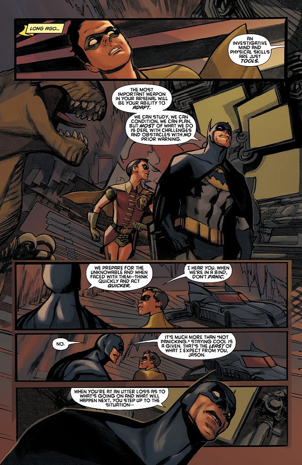 His fight is uncompromising and pure. There is no middle ground for Damian. There isn’t any hesitation or brooding. What a contrast to his papa. Stop and think that over. Is the contrast of Batman and the Joker more compelling? Well, in this case, there would have been room for both of these to exist.